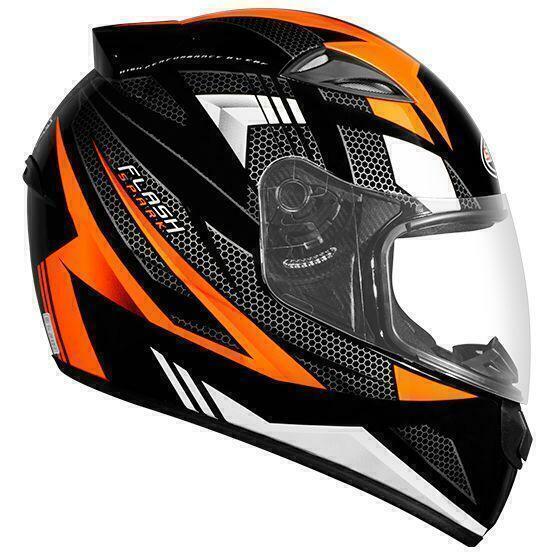 CAPACETE EBF NEW SPARK - Design com grafismos em transfer mais agressivo e moderno; - Viseira de dupla curvatura em policarbonato com 2 mm de espessura; - Fechamento de engate rápido; - Entradas e saídas de ar; - Casco aerodinâmico em resina termoplástica; - Sistema de troca rápida da viseira; - Casco injetado em ABS natural de alto impacto; - Revestimento de proteção feito em EPS de alto impacto; - Forro com espuma antialérgica removível e lavável; - Cinta jugular em nylon com fecho micrométrico; - Selo INMETRO; - Adesivos Refletivos;
